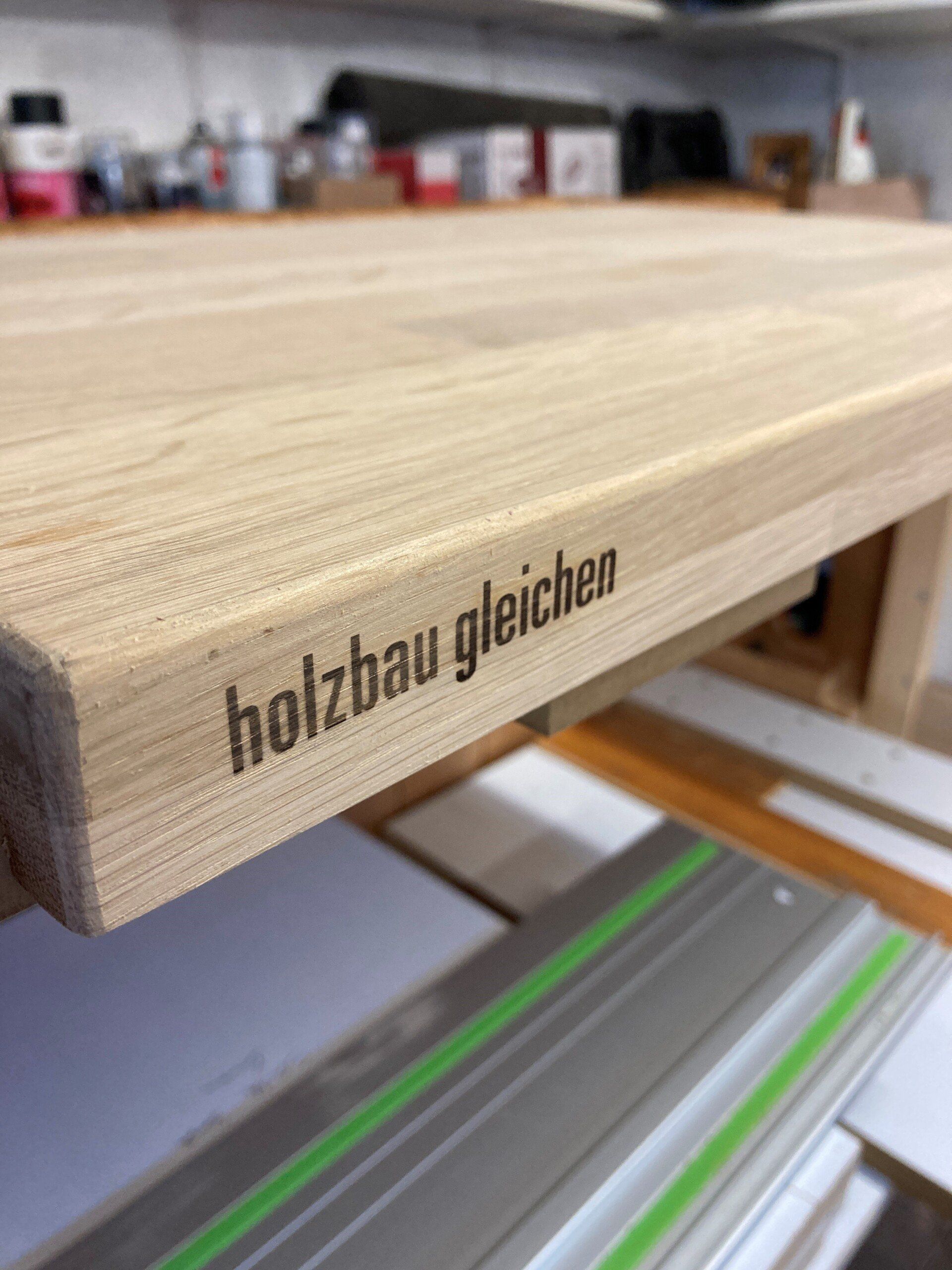heimischen Holzarten, gerne auch mit dem Holzbestand unserer Kund*innen, von Bäumen die direkt hier bei uns in Gleichen gewachsen sind.